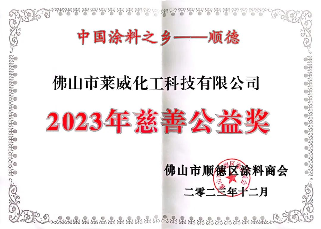 涂繪芳華,向高而行|順德涂料商會24周年 萊威化工公司一舉攬獲2023年慈善公益獎